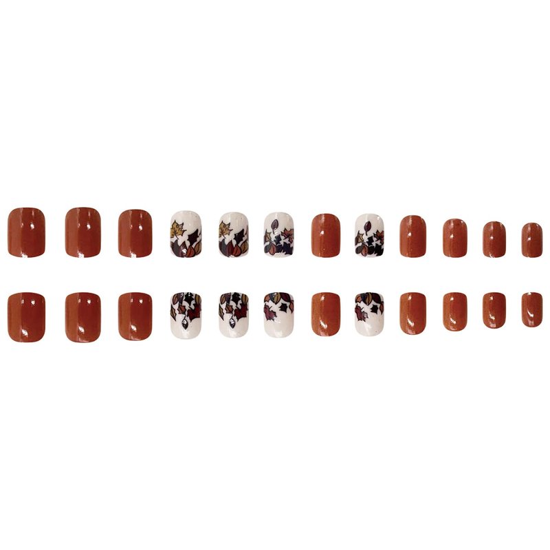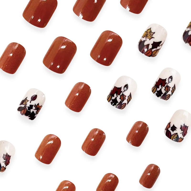 Square Fake Nails Short Press On Nails Fall False Nails With Maple Leaves Designs Brown Nails Press Ons Short Acrylic Nails Full Cover Glue On Nails Glossy Stick On Nails For Women