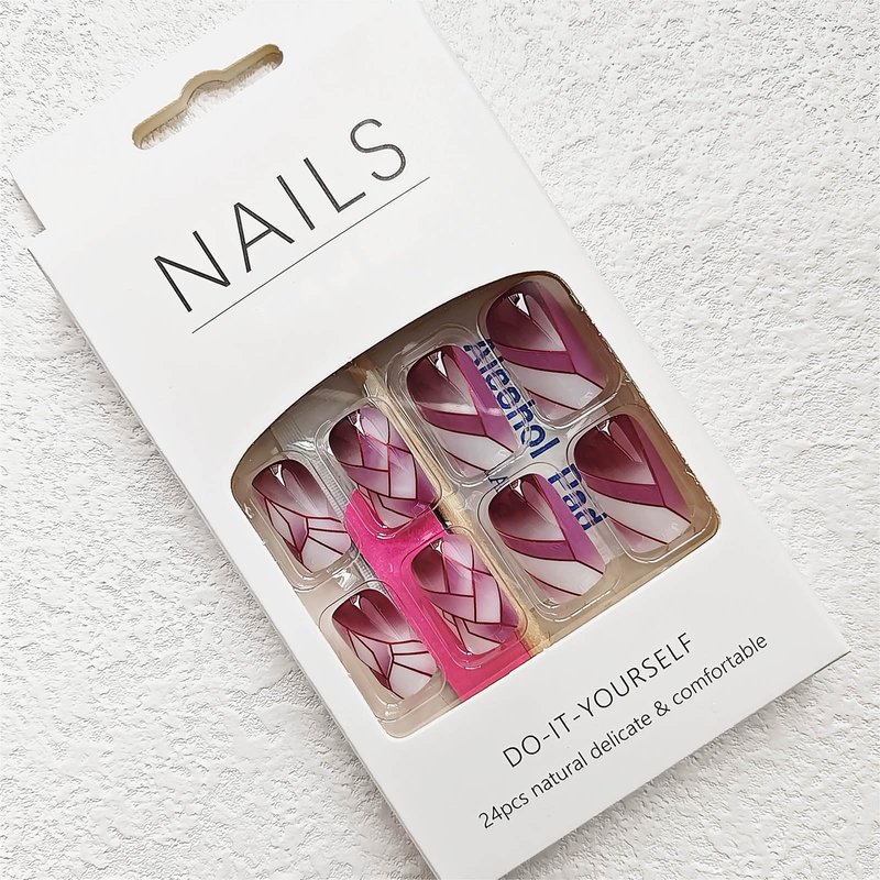 - π Medium Press on nails includes 24 pieces of artificial nails and a quick-fit kit:1 mini file,24 jelly tabs,1 stick,1 alcohol pad.