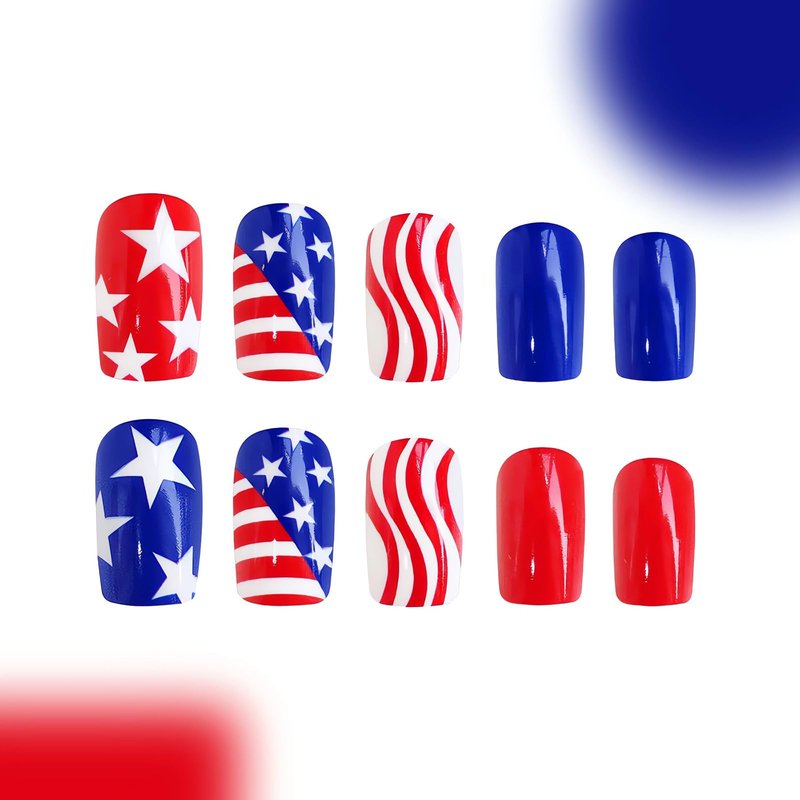- 4th of July Glue on Nails: After trimming and cleaning your natural nails, select the right size of our high quality nail and apply it on your nails, then press on your nails for 10 seconds. Now you have beautiful nail designs.