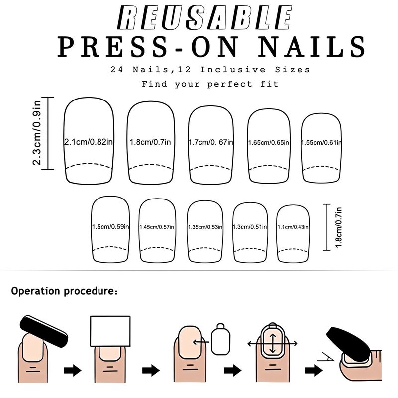 3.These square press on nails are designed according to the curvature of female's nails, with moderate thickness, natural fit, more natural effect, and comfortable to use.