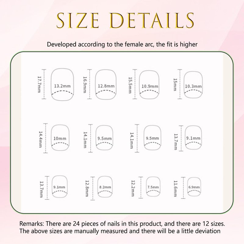 - PACKAGE LIST: 24 pcs short square press on nails kit, each box includes 24 fake nails, 1 sheet of 24 adhesive nail tabs, 1 cuticle stick, 1 double sided nail file and gel nail cleaning pads.