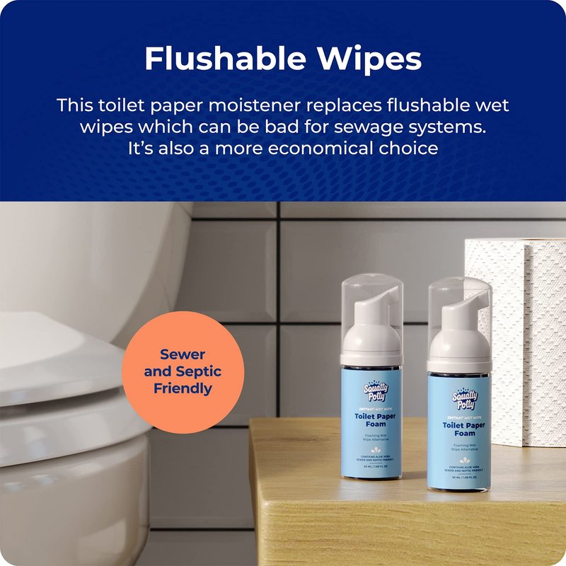 Squatty Potty Toilet Tissue Paper Foam Instant Wet Wipe Alternative - 2 Pack, 50 ml, 1.69 Fl Oz