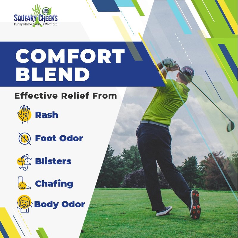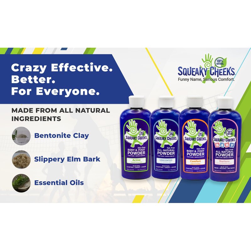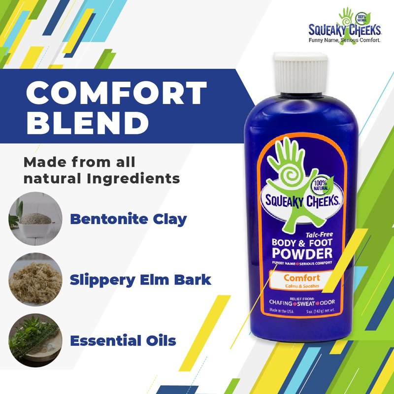 Squeaky Cheeks Comfort Blend Body and Foot Powder(5 oz) | Organic Talc-Free and All Natural Powder | Comfort Formula | Fresh Scent With Essential Oils | Effective Relief From Chafing, Sweat and Odor