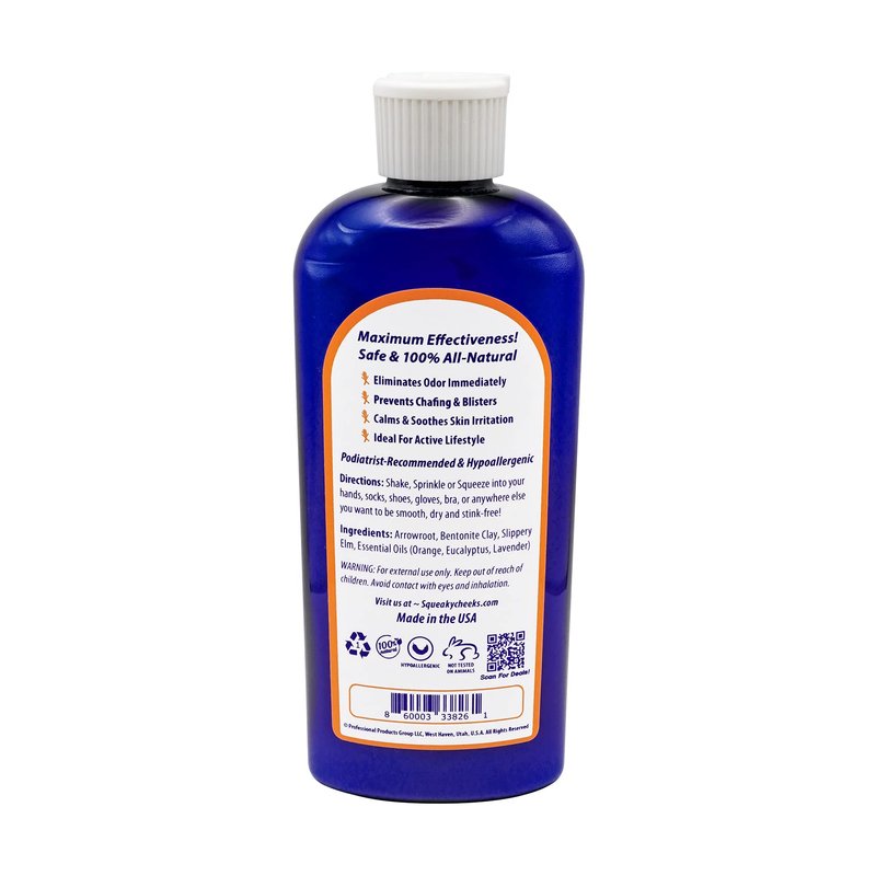 - SQUEAKY CHEEKS IS TALCUM FREE FOOT POWDER: Talcum powder can be incredibly dangerous for you and extended exposure may result in chronic lung irritation, also known as Talcosis. Talcum is also known to be responsible for various cancers such as ovarian cancer. SWITCH TO THE ALL NATURAL HEALTHY ALTERNATIVE FOOT POWDER TODAY!