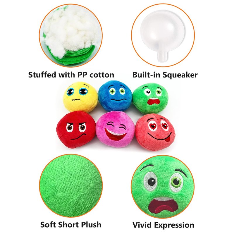 - Funny Ball Toy Pack : There are 8 squeaky toys, each with a unique face and different colors. Your puppy can pick out his favourite. This pet toy bundle is designed to be a long-lasting companion for your dog and is also suitable for families with multiple dogs.