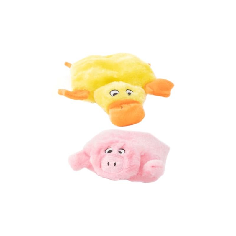 Squeaky Plush Dog Toy Squeakie Pad 2 Pack Duck Pig