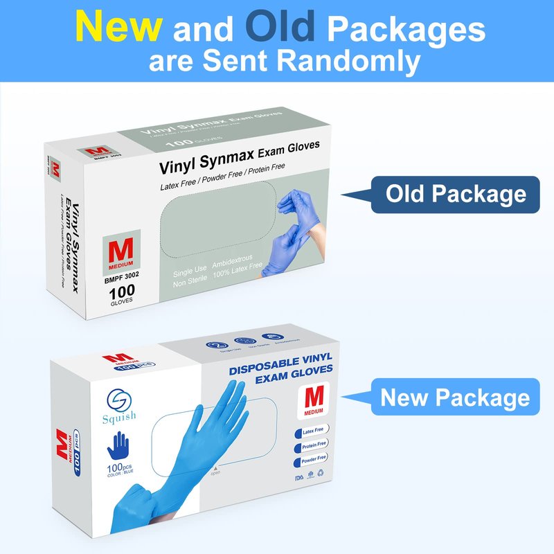 squish Disposable Gloves, 100Pcs Blue Vinyl Blend Exam Gloves Non Sterile, Powder Free, Latex Free - Cleaning Supplies, Kitchen and Food Safe(Pack of 100) (Blue Medium)