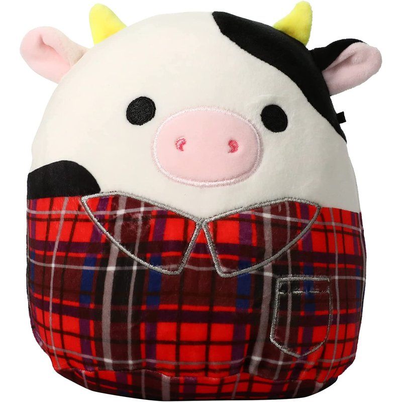 Squishmallow Official Christmas Winter Holiday Kellytoy Plush Squishy Soft Plush Toy Animals (Connor Cow (Plaid Jacket), 7.5 Inch)