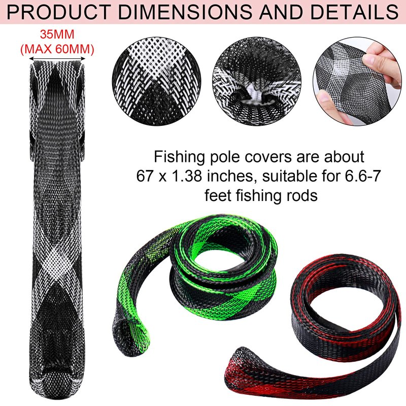 - Easy to Use: the fishing pole sleeve is simple to use; You can install it on your fishing rod in a short time, no need to worry that it will fall off easily, which can protect the fishing rod from spoilage in the process of taking a boat or transportation