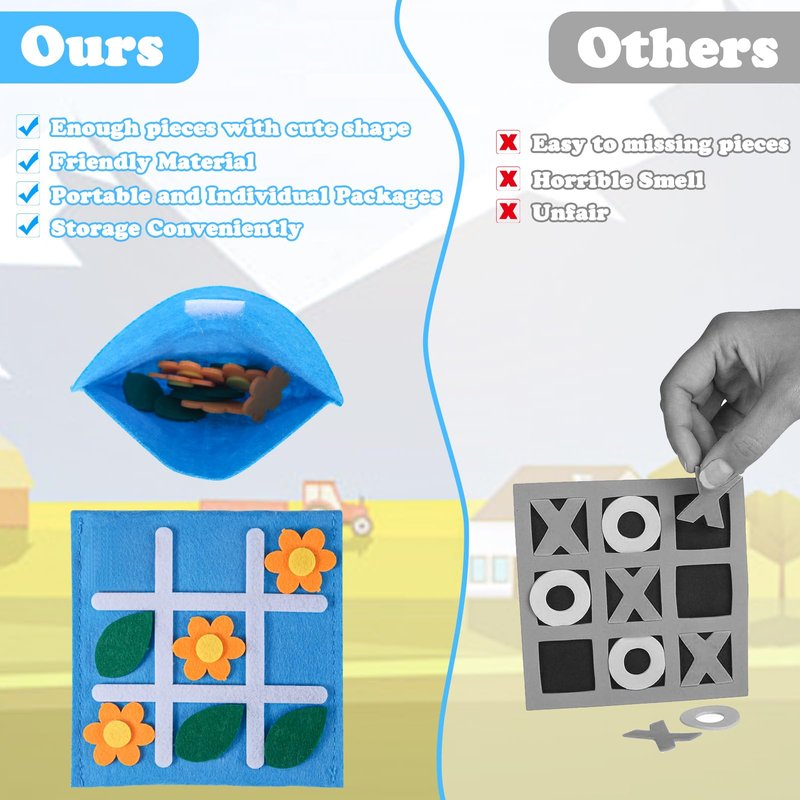 - Portable Storage Pocket Design: Each Tic Tac Toe board game comes with pocket for storage and avoid lossing. High-quality felt material makes it perfect for goodie bags stuffers. Great travel toys and perfect for road trips