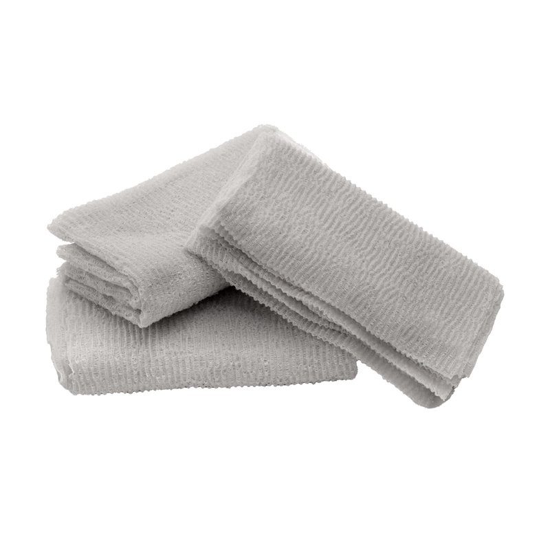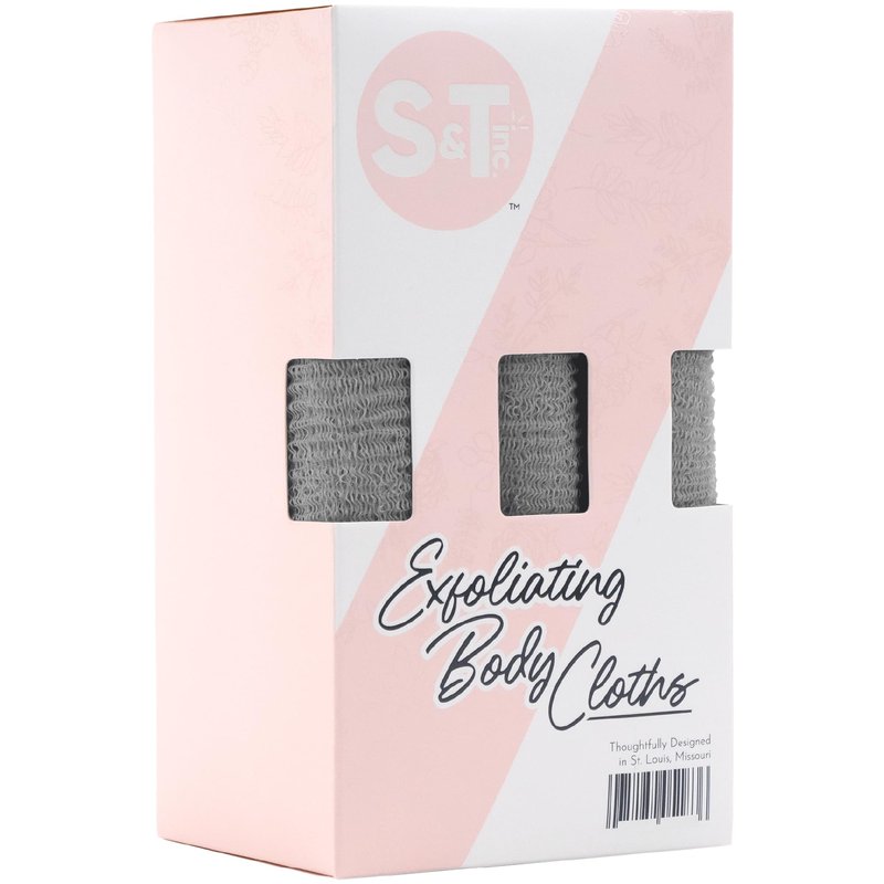 - Three S&T INC. Exfoliators for Body, measuring 11.8 in. x 35.4 in. each; Light nylon fabric provides a gentle exfoliating clean to your skin, revealing a softer and smother skin
