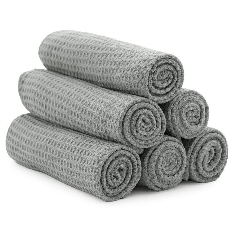 - One 6 pack of sweat towels for gym measuring 16 inches by 27 inches