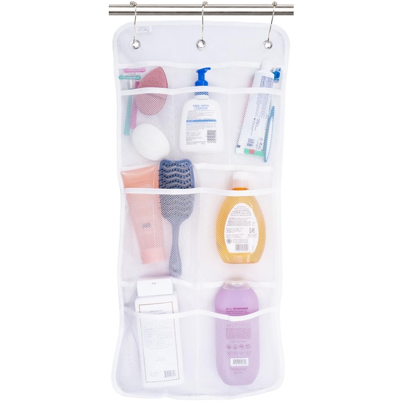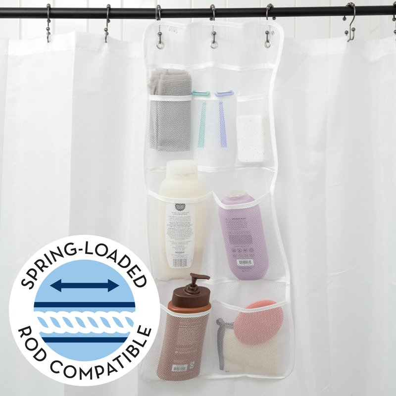 - 7 pockets to keep your shower needs organized and within reach; perfect for storing body wash, shampoo, conditioner, and other personal care products