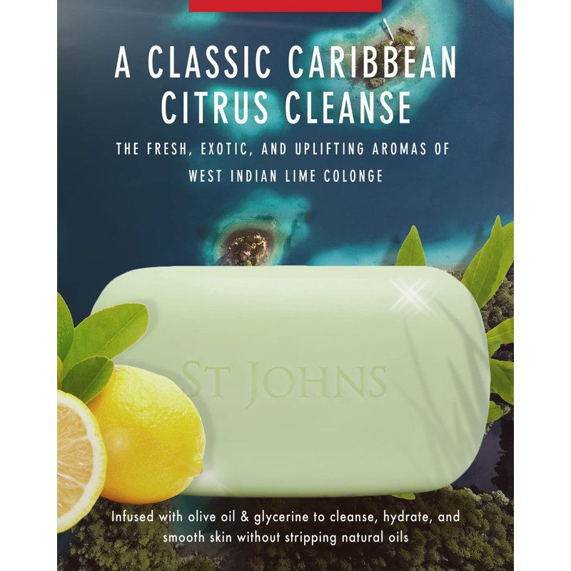 St. John West Indian Lime Soap Bar | Refreshing Caribbean Citrus Soap for Men | USA Made, Triple-milled Soap Bar | Luxury, Hydrating Body Soap with Olive Oil & Glycerine | (7 oz Bar)
