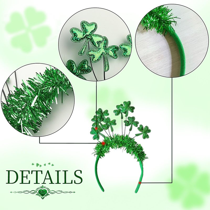 - ☘️[ Perfect Accessory ] St. Patrick's Day headpiece with fine workmanship is the perfect accessory for St. Patrick's Day party, it can match any outfit and hairstyle you like, make you eye-catching and charming, just show off your love for the holiday!
