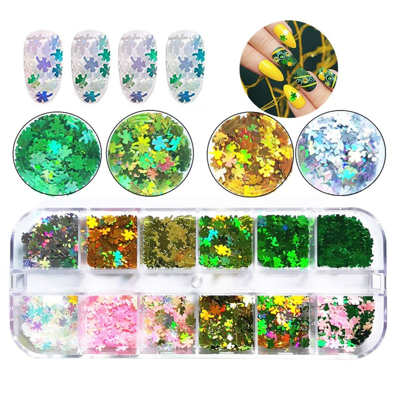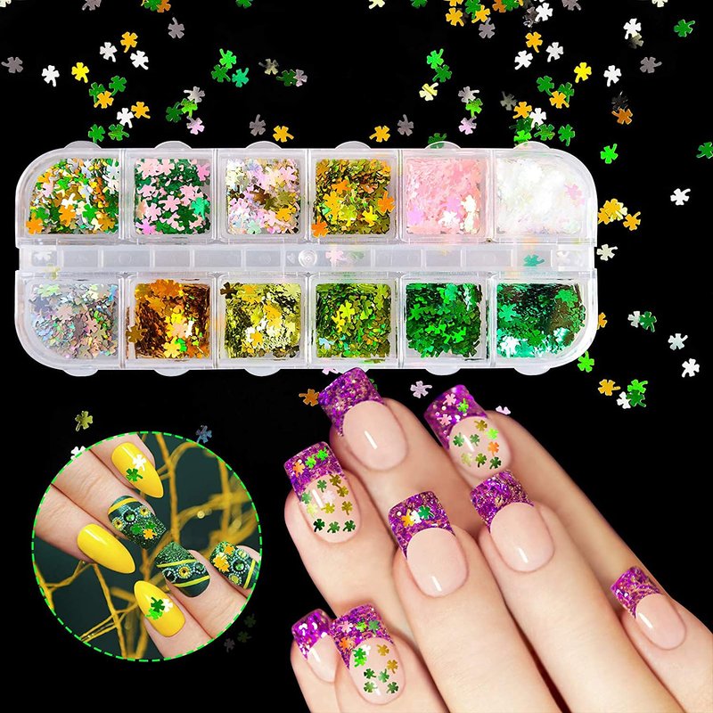 - 【Quantity】 12 Grids holographic four leaf clover nail sequins come in many colors(green, white, yellow, gold, silver, pink), you can choose your favorite one or combine them to meet all your nail art needs.