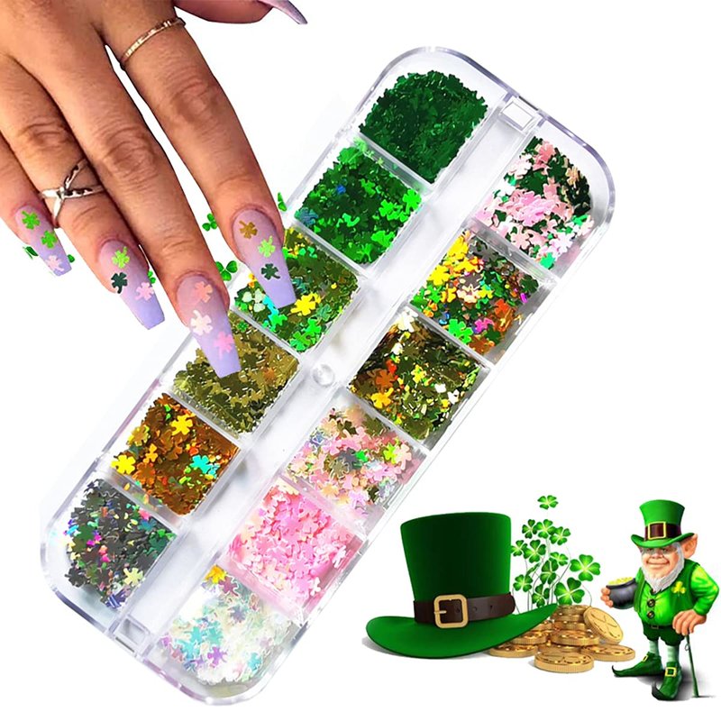 - 【Healthy】Green clover nail glitter sequins is safe, non-toxic, eco-friendly, harmless to your nails, suitable for professional use or home use, easy to apply on natural or artificial nails.