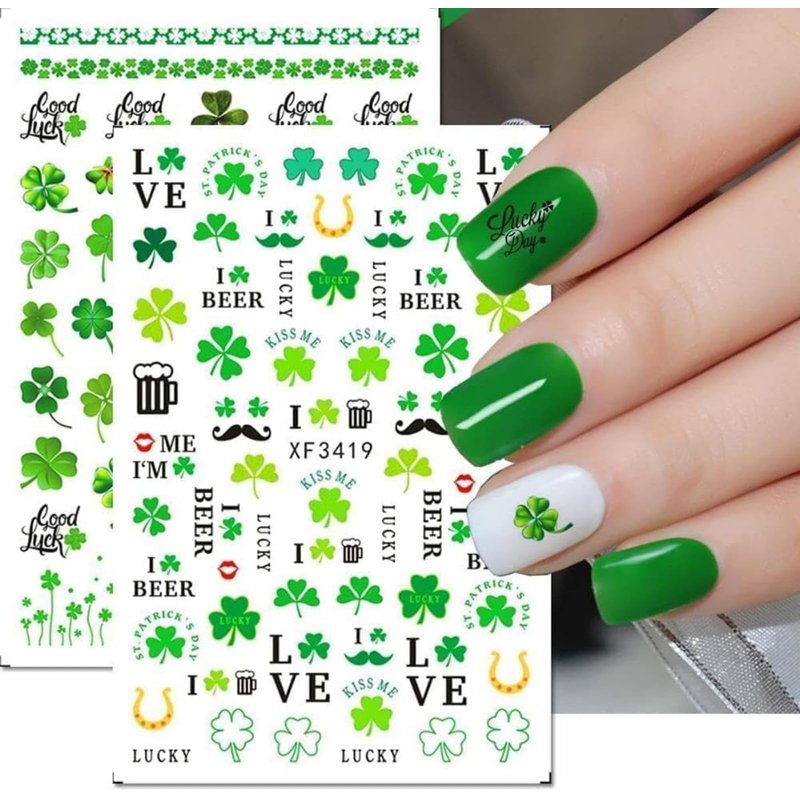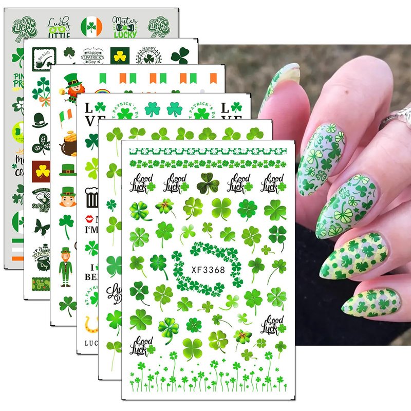 - ☘️【St. Patrick's Day Nail Stickers】: You will get 6 sheets of self-adhesive nail stickers and detailed instructions, these St. Patrick's Day nail art decals have the typical elements of St. Patrick's Day, such as the shamrock, four-leaf clover, gold coins, luck, beer, butterflies, etc., enough for you to choose and make decorations.