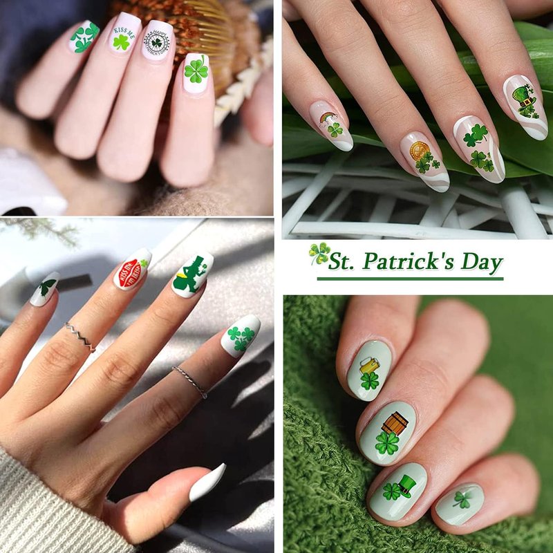 - ☘️【Safety Material】: St. Patrick's Day nail art decals are made of environmentally friendly materials, reliable and durable, not limited to any nail art styles, and can meet the requirements of most nail art lovers. It is fun to DIY nail art with family or friends during family gatherings.