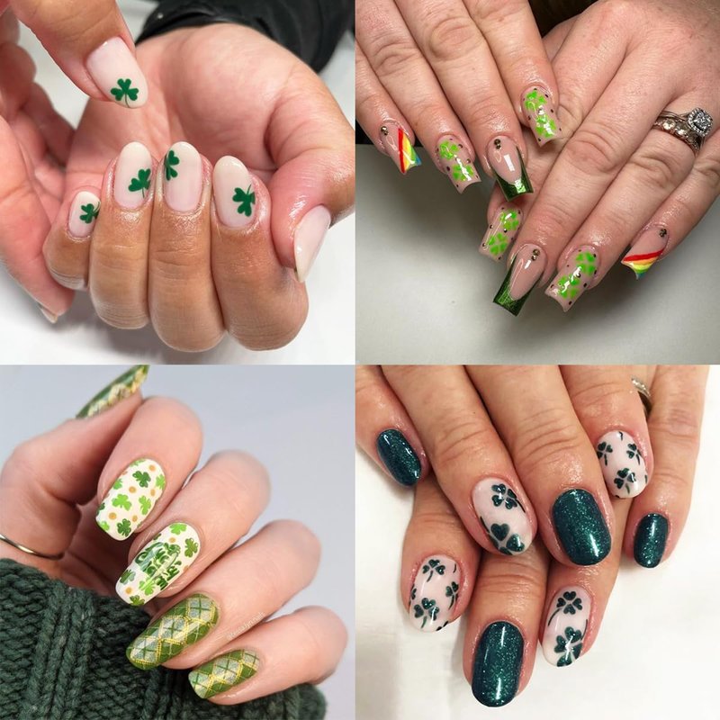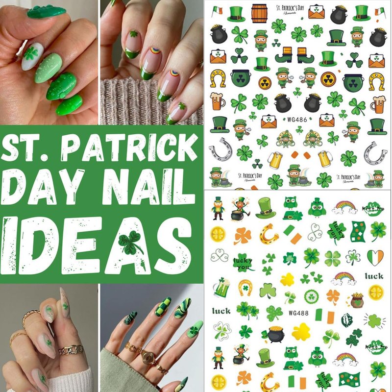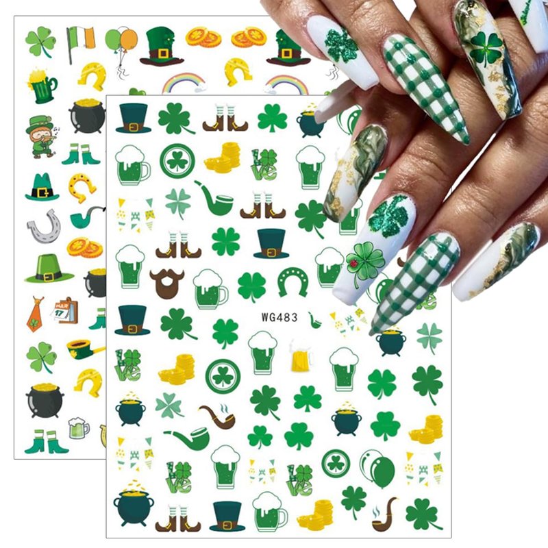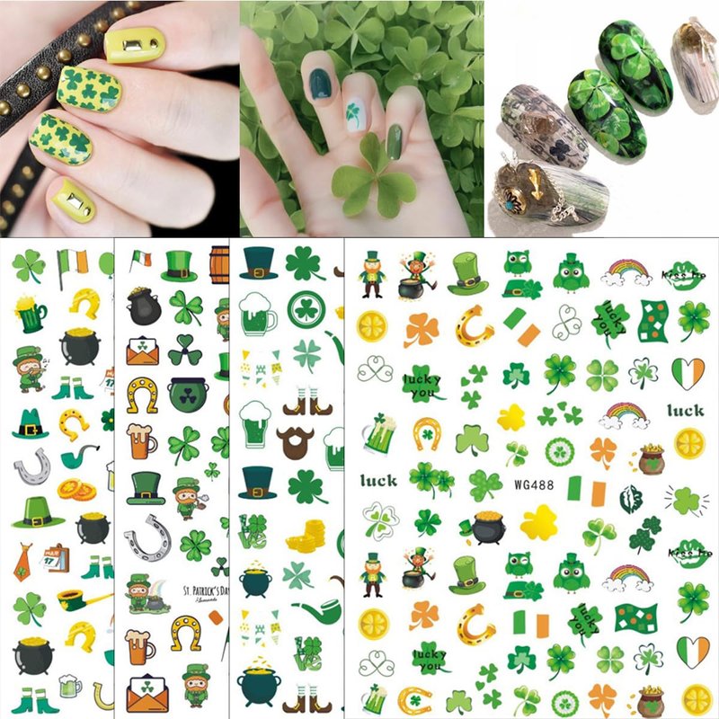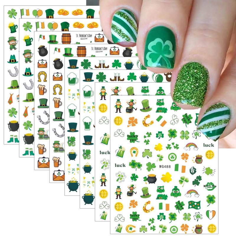 - Irish Shamrock Nail Decor Accessories- You will get 8 sheets classic St. Patrick's Day theme Irish nail art stickers, Four leaf clover, Solid and Hollow Shamrocks design, fan, more St. Patrick’s Day Shamrocks decoration, in this package you can find patterns you like and create your own style.