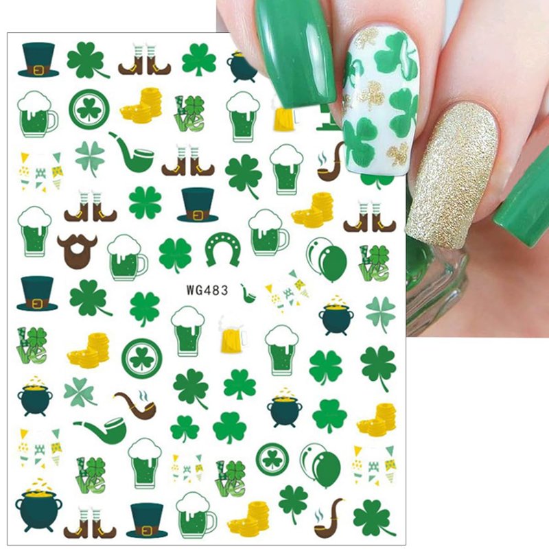 - Luck of The Irish Stickers DIY- These st patricks day stickers self adhesive nail art design with green clover as the theme, it represents luck and happiness. St. Patrick’s Day can bring you good luck. Lucky Irish nail stickers can make your nails more charming and lovely.enjoy a different great festival.