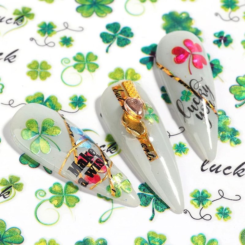 - ☘【Package】You will get 6 sheets of different designs green shamrock nail stickers, Four leaf clover, Solid and Hollow Shamrocks design, fan, more St. Patrick’s Day Shamrocks decoration.