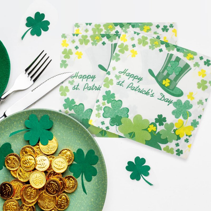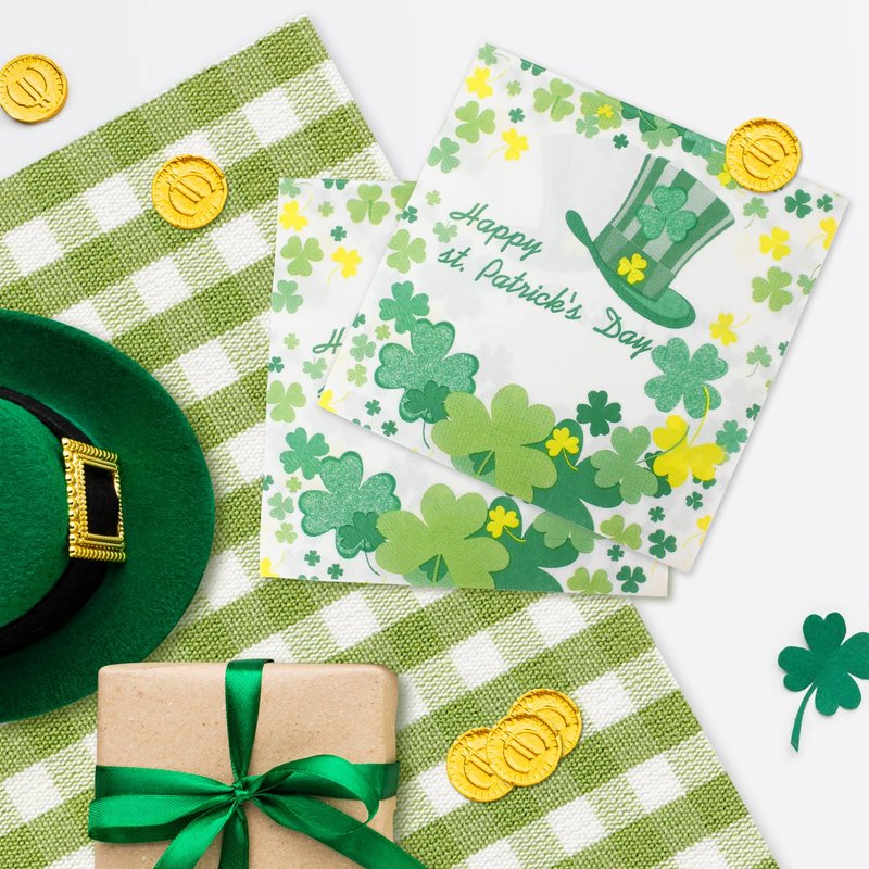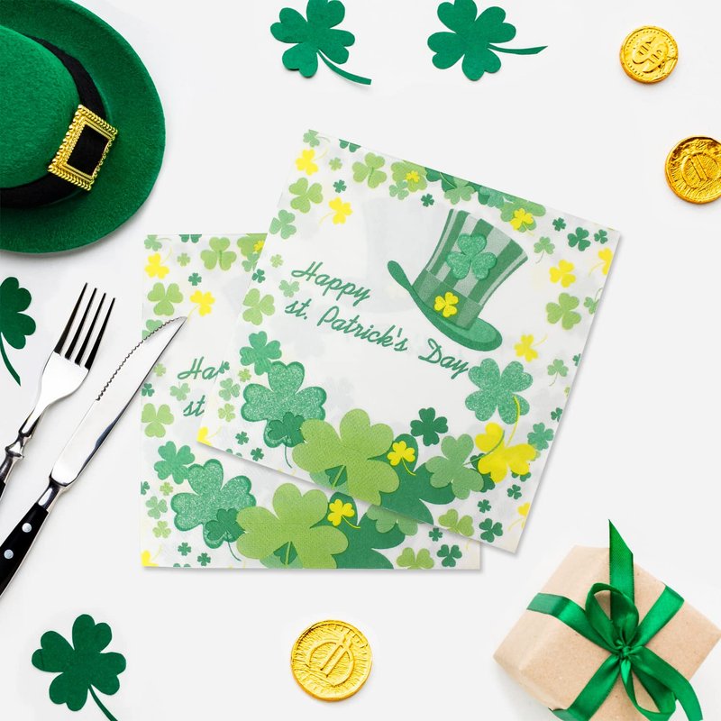 St. Patrick’s Day Napkins, Green Shamrock Paper Napkins - Disposable Saint. Patrick’s Hat Clover Dinner Napkins for Irish Event Get-together, DIY Parties, Unfolded 13x13 inches, 2-Ply, 40 count
