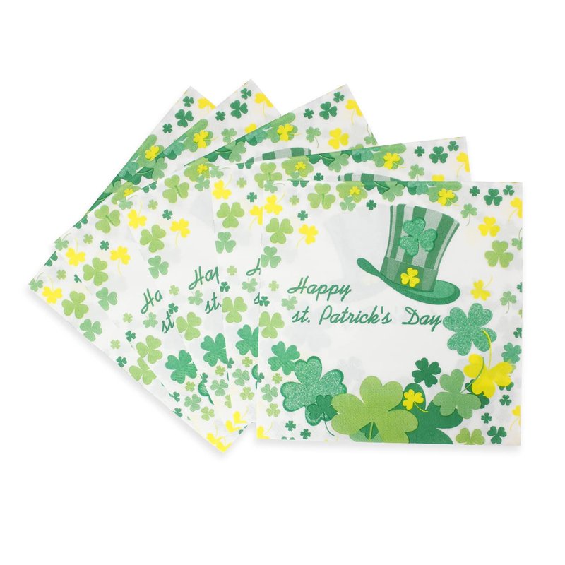 Green St. Patrick’s Day napkins printed with green clover and St. Patrick’s hat,will add a big hit to your St. Patrick’s party decoration. 2-ply paper napkins, unfolded 13x13 inches, folded 6.5 inches, 20pieces each package, 40 count in total.