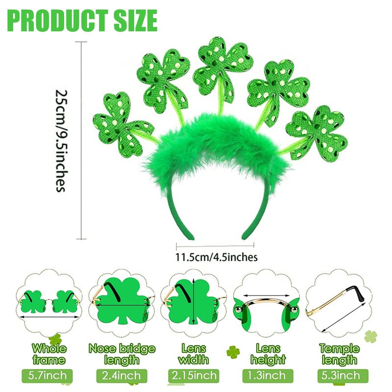 St. Patrick's Day Shamrock Headband St. Patrick's Day Costume Accessories and Green Shamrock Sunglasses St Patricks Day Irish Party Supplies Favors