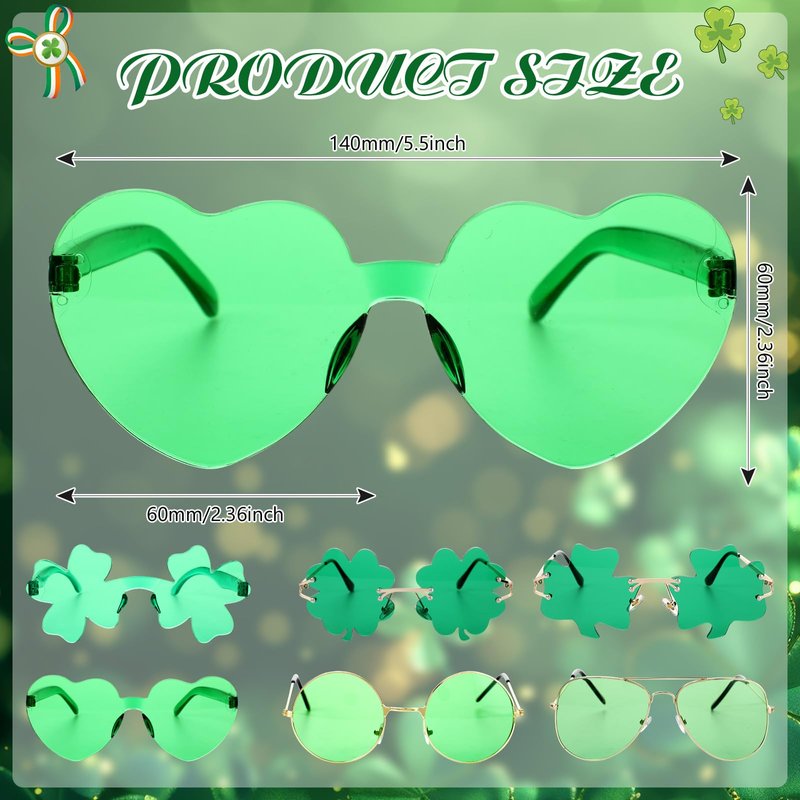 - Package includes: The package includes 1 pieces of headbands with 1 pieces green heart sunglasses, suitable for St. Patrick's Day, costume parties, photo shoots, or daily wear.