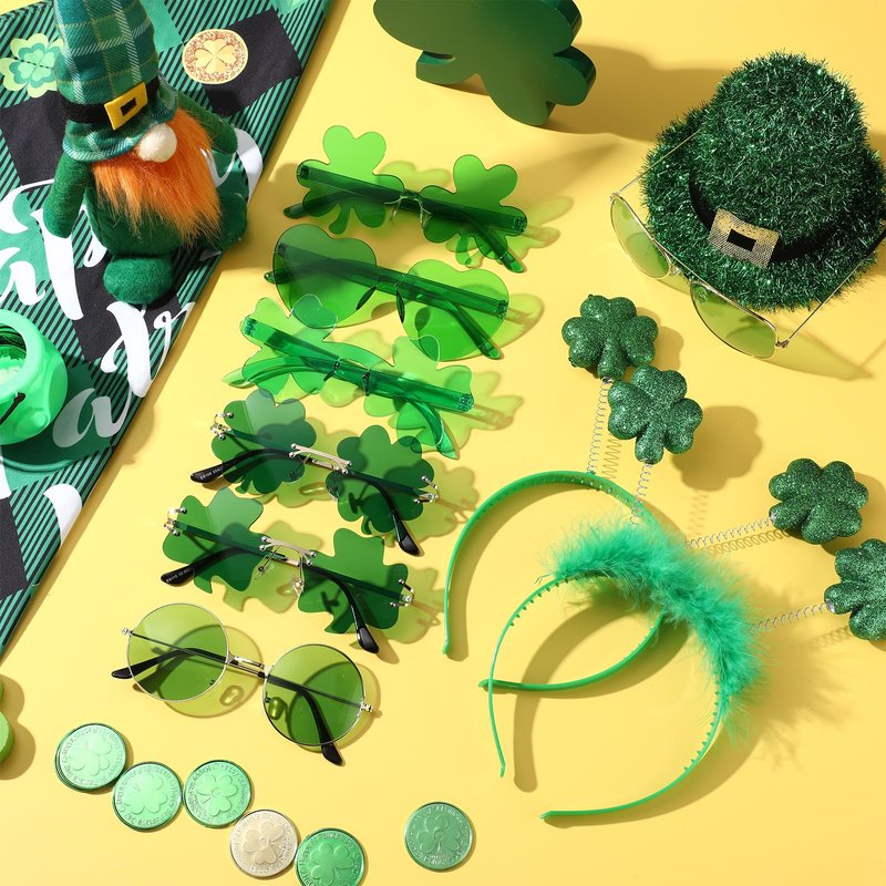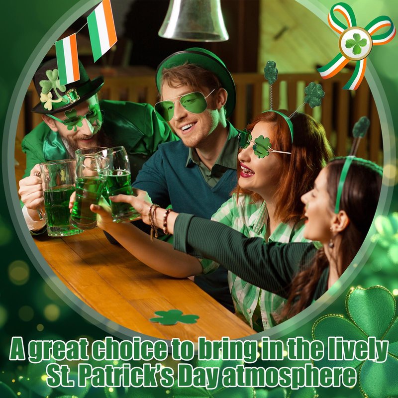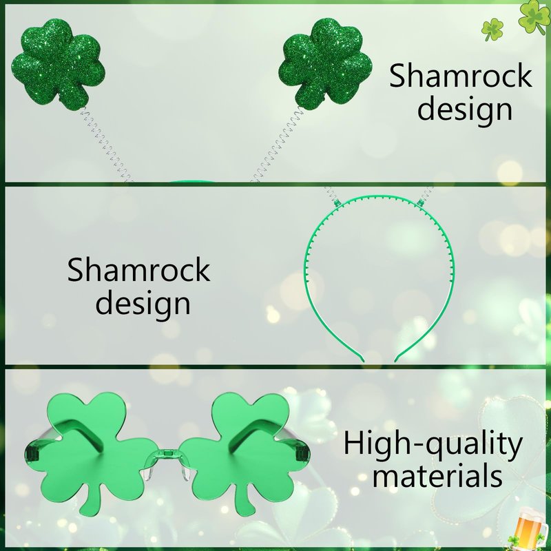 - High-Quality Materials: The headbands and sunglasses are made of high-quality materials, ensuring durability and longevity. The sunglasses feature a durable frame and clear lenses, providing clear vision and Show off your green spirit at parties and parades!