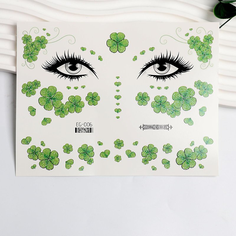- ☘️𝐏𝐚𝐜𝐤𝐚𝐠𝐞 : 2pcs green Shamrock stickers.These St. Patrick's Face temporary tattoos feature a vibrant green shamrock design, perfect for adding a touch of Irish spirit to your St. Patrick's Day celebrations.