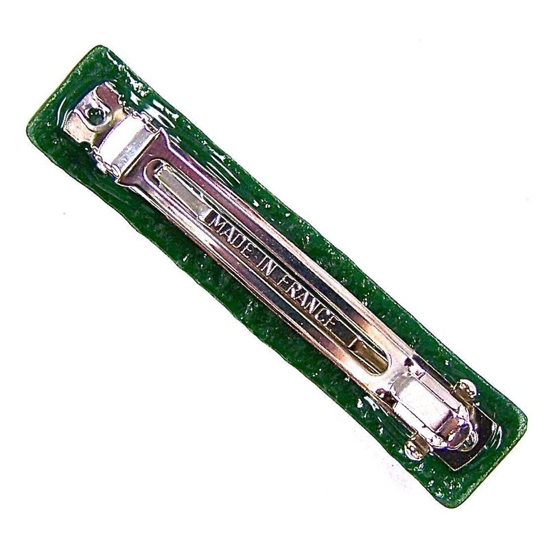 Stained Glass Barrette - Small 2.5" 65mm - Jade Green Moss Forrest Green Slide Clip Hair Accessories....SOLD INDIVIDUALLY. This barrette is made from Tiffany style glass... LIGHT WEIGHT AND COMFORTABLE: We try to keep our barrettes light weigh and very comfortable to wear. We want you going for them every day~! Buy as singles or as pairs (when available, if you don’t see 2 of these in stock, we might be able to make a pair for you depending on our glass inventory). ABOUT OUR TIFFANY BARRETTES: This barrette is made from Tiffany style sheet glass... Think stained glass windows and lamps.... YUP, that’s the stuff. This is not the metallic dichroic glass we normally work with. We had some of this Tiffany glass in the closet so we made some of these “Tiffany” stained glass barrettes, and BAM... SOLD. Tried it again, and the same thing happened. It became immediately clear that people want attractive, and well-made barrettes in a variety of colors and finishes. So here you go~! We’re here to provide them. If you need multiples of specific barrette, or would like to see us make something in another size, send us a custom order request. Maybe we can hook you up. Look for our barrettes in 2.5" Small, 3.5" Large, and 1" Tiny. Available in hundreds of colors. It may just take a while for us to get them loaded into this shop. If you don't see what you want, ask us. Let's talk.