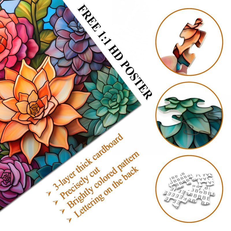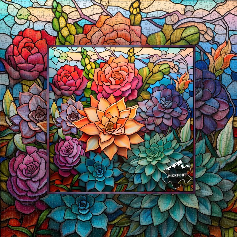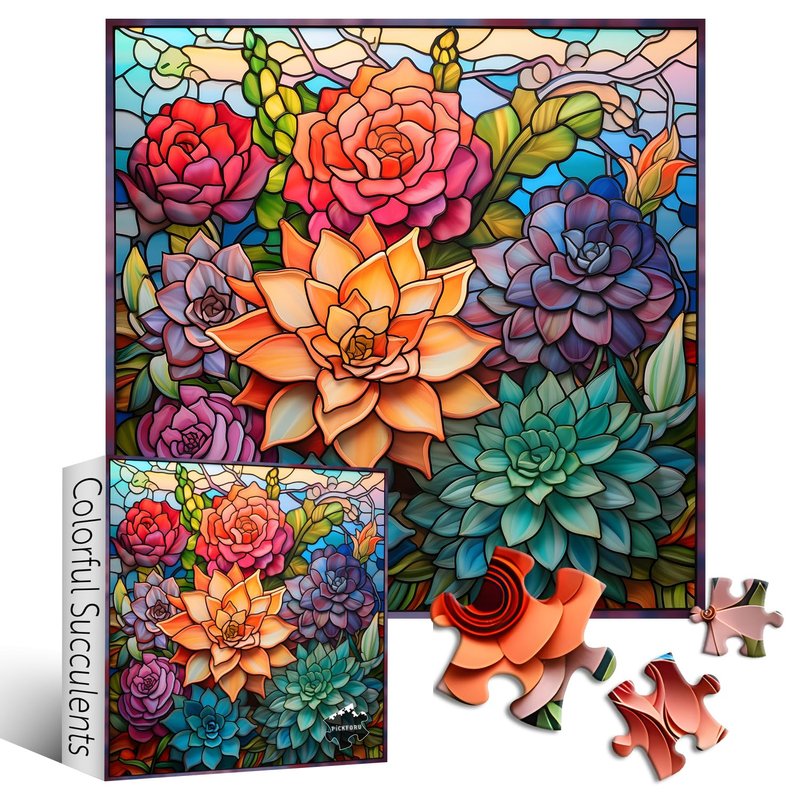 - Stained glass wall decor:colorful cactus succulents jigsaw puzzle, vivid colors and fine details. You can frame it and adorn your living room or bedroom once completed. This plant puzzle 1000 pieces adds a touch of art beauty to any space