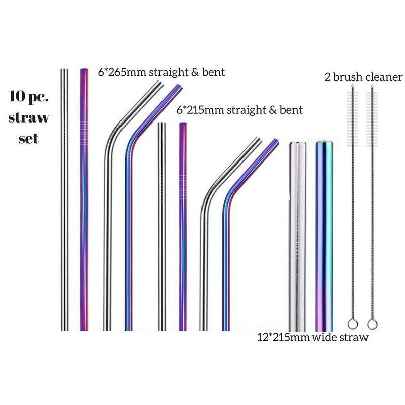 Stainless Steel Drinking Straws | COMPLETE Set - 10 straws, 2 Brush Cleaners & Travel Case | Eco Friendly | Straight & Bent PLUS Wide Smoothie/Boba Straws | Perfect For 20, 30oz. Yeti/RTC Tumblers etc