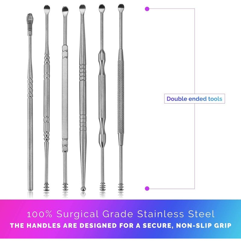 - IRRITATION FREE! NO MORE PAIN: The problem with other ear wax removal kits is that they irritate your ears rather than cleaning them. Our earwax removal kit solves that problem! Why? That's because our ear wax removal kits were made with ergonomic and skid resistant designs, stainless steel and are rounded to prevent irritation and scratching. Now you can clean your ears without the worry of irritation or pain.