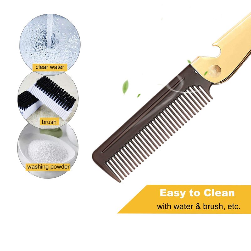 After folding, it measures 11x3.3x0.7centimeter (4.3x1.26x0.27inches). the beard comb features plastic teeth and metal handle. The comb teeth are round and smooth, no hurting and comfortable using. While the handle is made of stainless steel, sturdy and safe for your hair comb. The portable comb is also a party first choice and ideal gift. It can be used as a bottle opener, tidy your hair or beard at lively parties. With all these advances, when the noble and beautiful pocket comb is sent to men and women, boy friend or girl friend, they could be happy. To last serving time, please wash your fold comb with normal temperature water and soft brush, and then let it dry naturally.