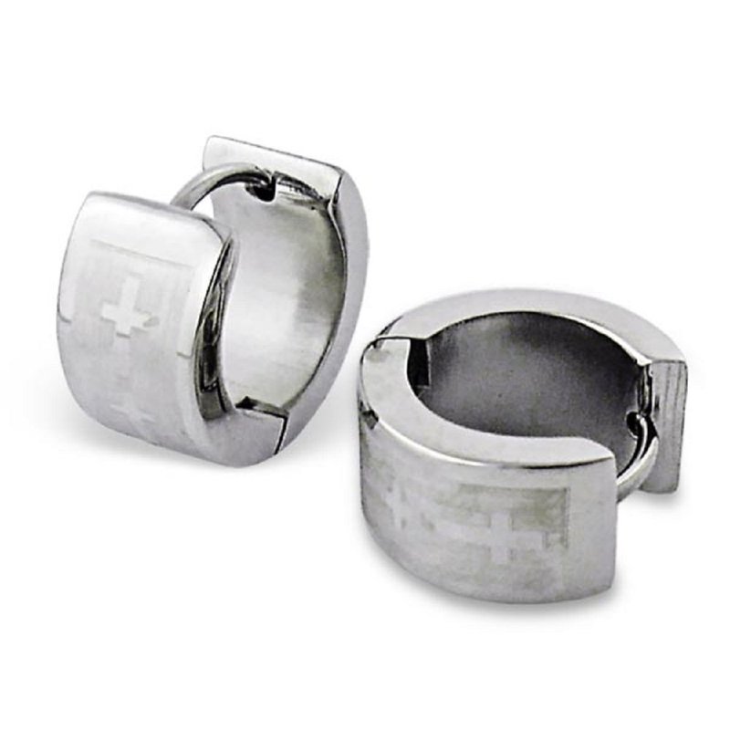 Stainless Steel High Polish Cross Huggie Hoop Earrings 836