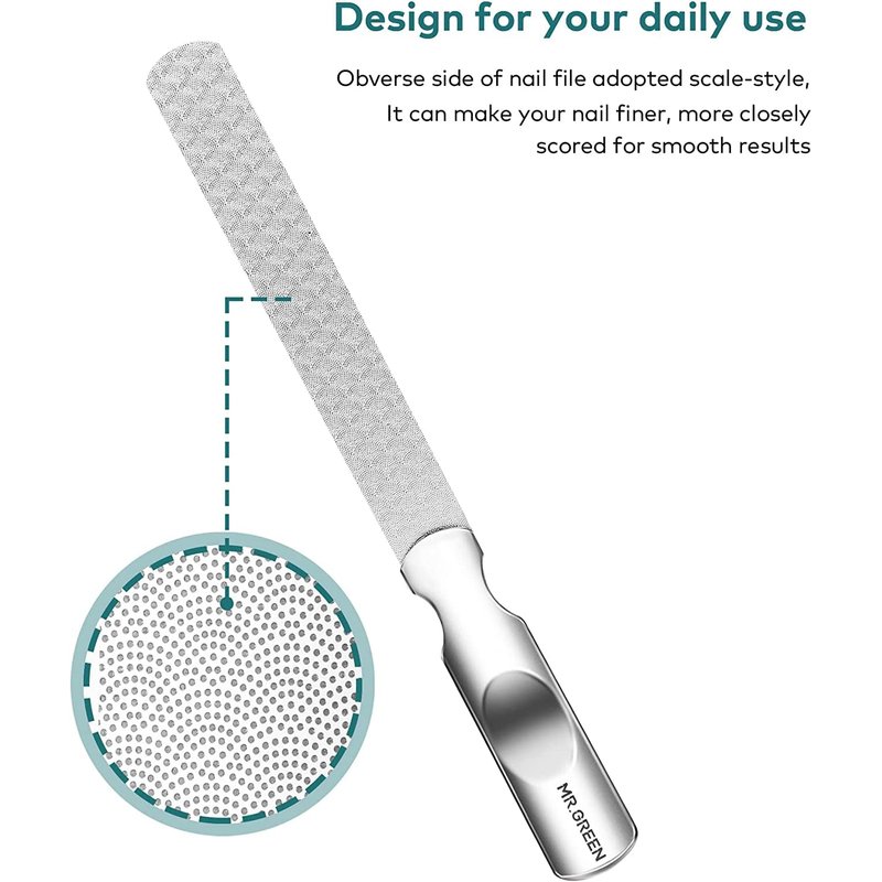 Stainless Steel Nail File with Anti-Slip Handle and Leather Case, Double Sided and Files Nails Easily for Men and Woman