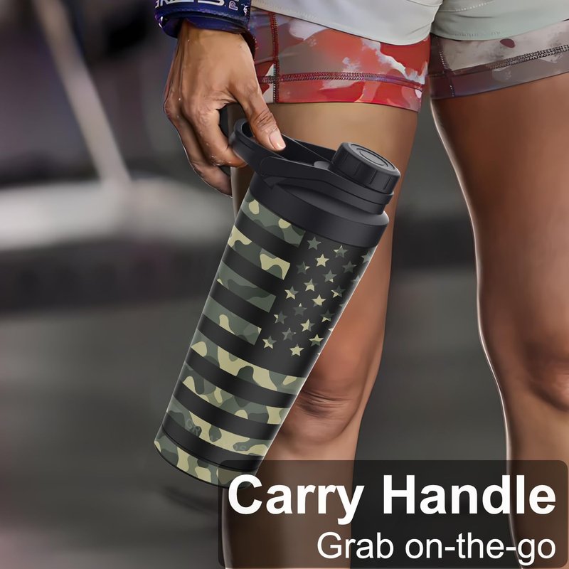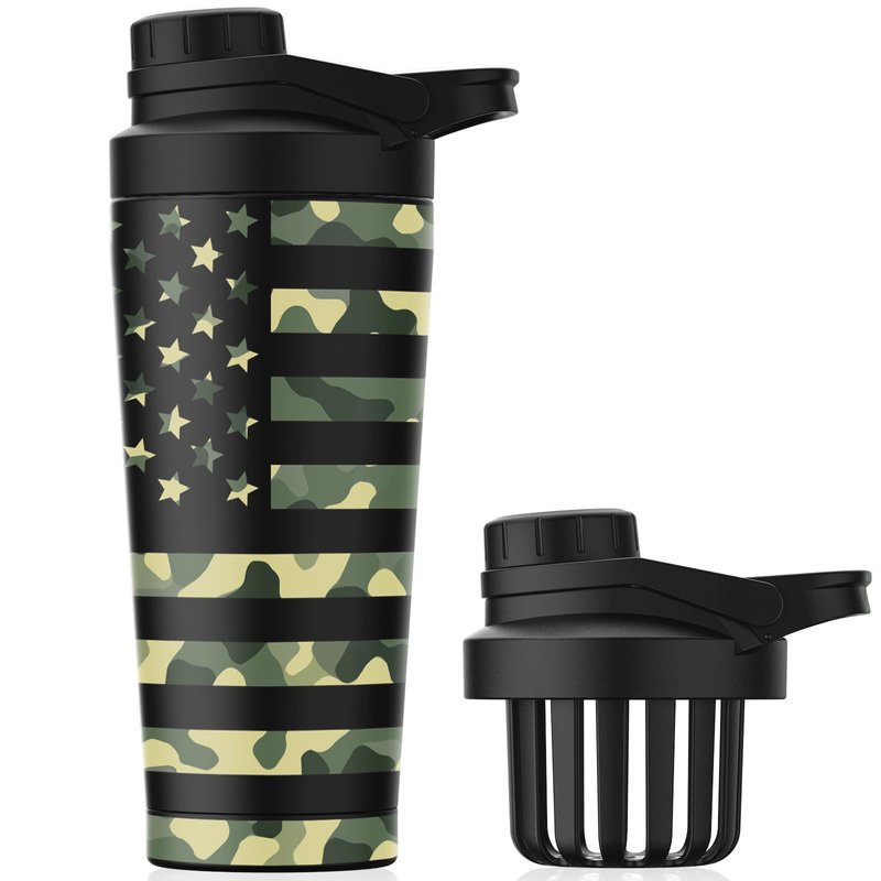 Stainless Steel Shaker Bottle with Noise-Free Design - Patented 24 oz Insulated Metal Shakers Bottles Cup for Protein Mixes and Pre Workout 100% Leak Proof (Camouflage Flag)