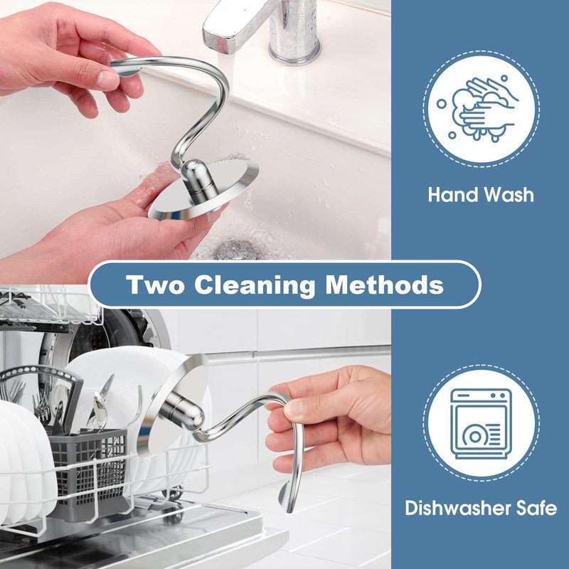 - Dishwasher Safe: Cleaning it is also easy. This stainless steel spiral dough hook for kitchenaid stand mixer is dishwasher safe for easy cleaning and sanitation after use. It can also be cleaned by hand with soap and water if desired. If you have any questions about the product, please contact us.