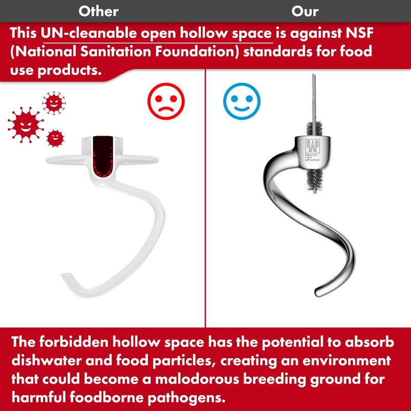 - Excellent Quality: Our dough hook is made from premium stainless steel, ensuring maximum durability and rust resistance. Say goodbye to peeling coatings and enjoy a baking experience that is food-safe and easy to clean.