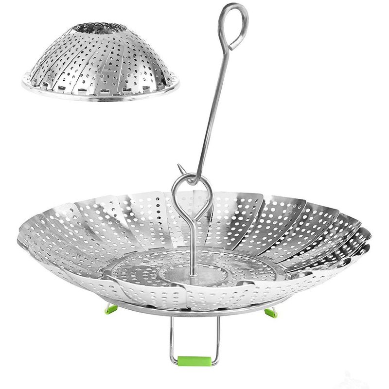 - EASY TO USE & CLEAN: Easy to open for the best size to fit your instant pots/pans. Just need placed the basket and feet sides down in your pot, bring water to boil. Then you can enjoy the original taste food after the certain minutes; Highly polished surface prevents food from sticking to the steamer and make the cleaning easily