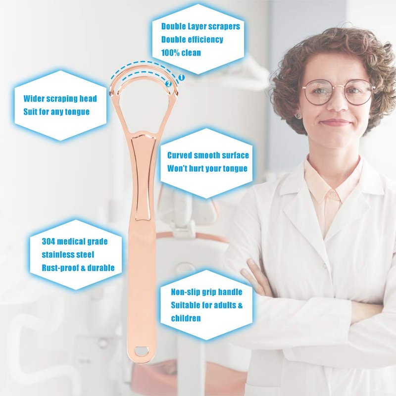 - 100% EFFECTIVE - Made of surgical grade stainless steel stainless steel, this tongue cleaner is designed with double layer and smooth surface which can thoroughly clean your tongue, remove oral dirt, reduce bad breath, improve oral health, and make our breath fresher.