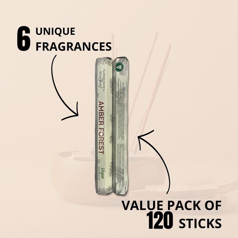Stamford Exotic Vegan Incense Sticks Variery Pack - 120 Incense Sticks | Exclusive Vegan Range Collection | Best for Meditation,Yoga,Aroma Therapy, Relaxation|