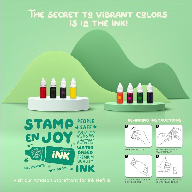 - For use with self inking stamps, ink pads, and stamp pads. Perfect refill ink for Stamp Joy stamp sets.