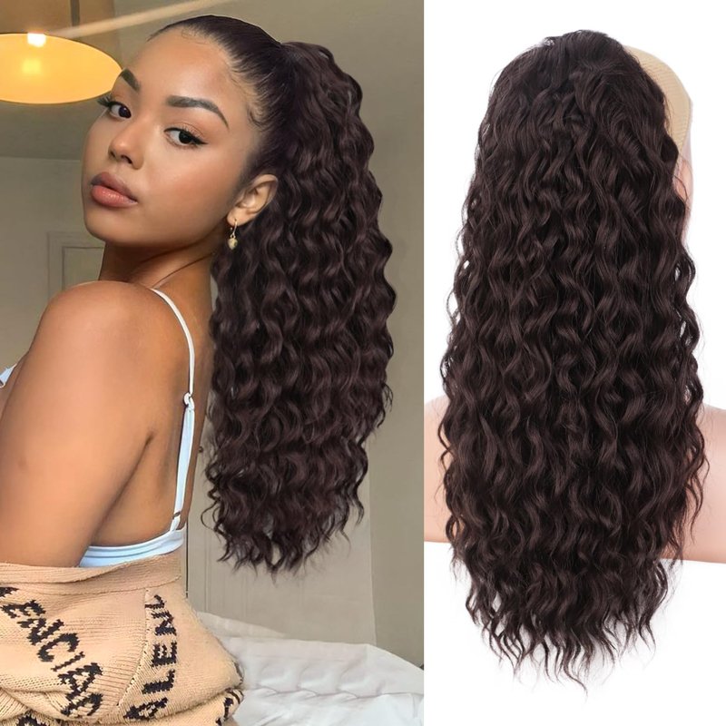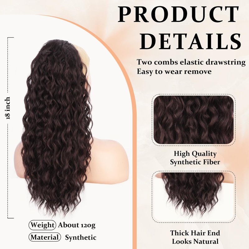 Stamped Glorious 18 Inch Curly Ponytail Extension for Women Synthetic Drawstring Ponytail Hair Extensions for Girls Daily Party Use (18 inch, Dark Brown)
