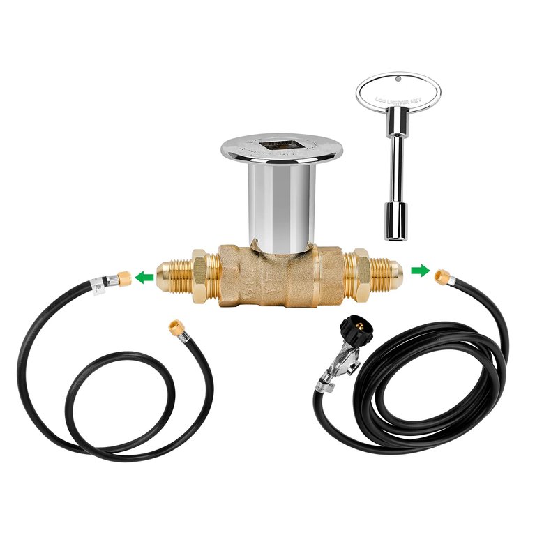 Our Chrome keyed main shut off ball valve kit is what every indoor, outdoor fireplace and fire pit needs to be safe. Most codes require a shut off valve at the appliance so it is in reach in case of an emergency.