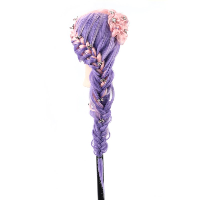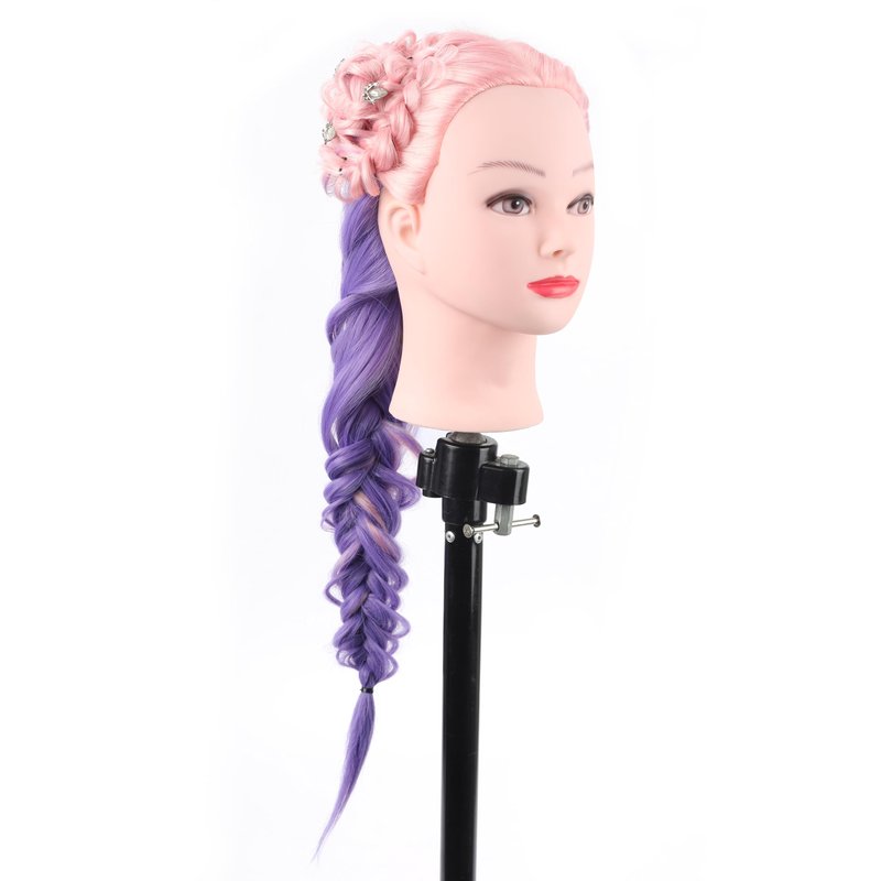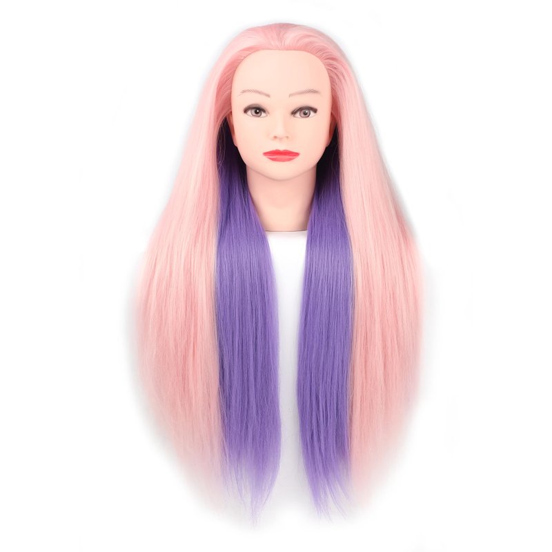 - 〖Mannequin Head Material〗100% synthetic hair, Pink & Purple mannequin head hair, Vinyl head and facial makeup.