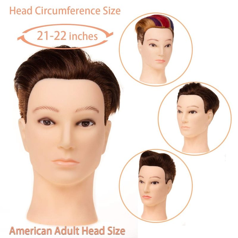 Stancia Mannequin Head, Male Mannequin Head with 100% Human Hair, 14" Barber Mannequin Head, Hairdresser Training Doll Manikin Head for Hair Styling and Practice (Dark Brown)